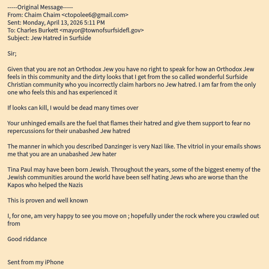 Contact me: Mayor@TeamSurfside.com 305-517-1175